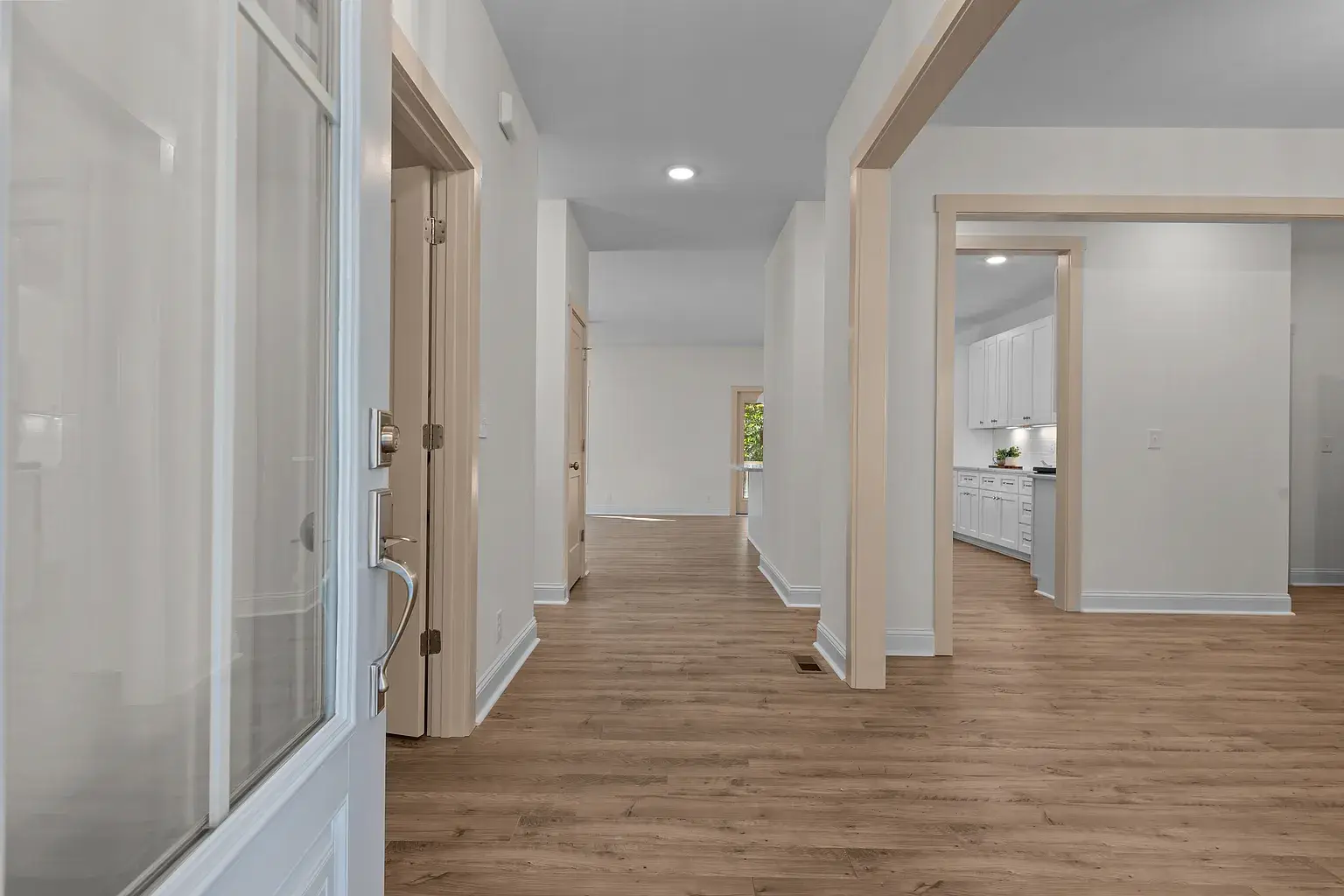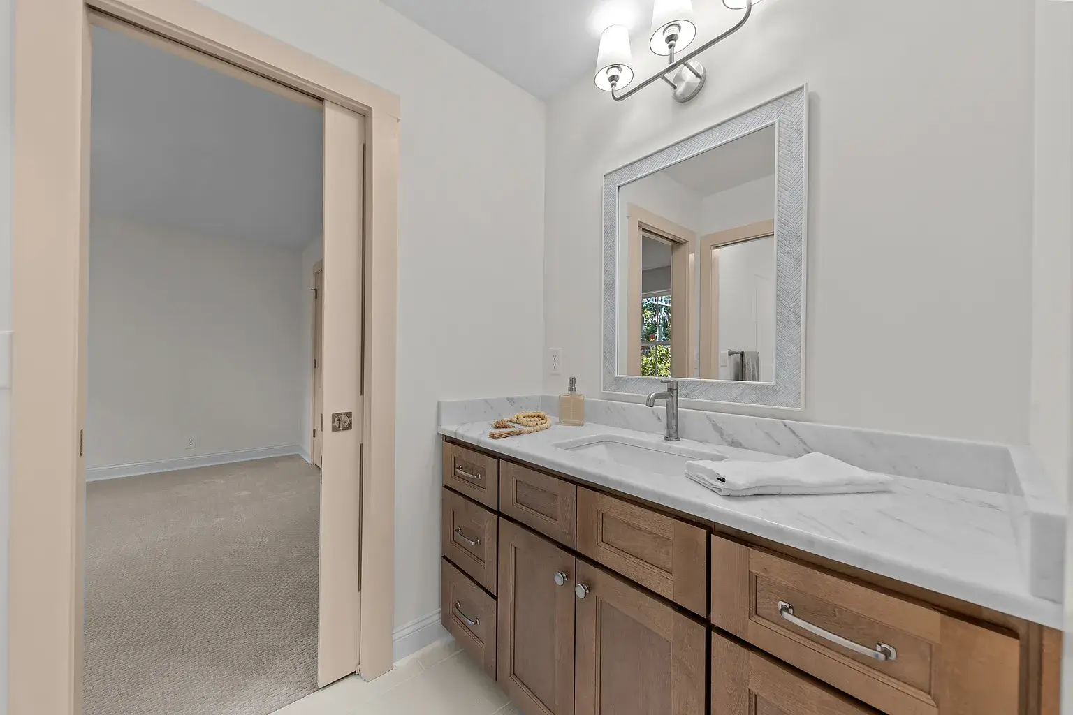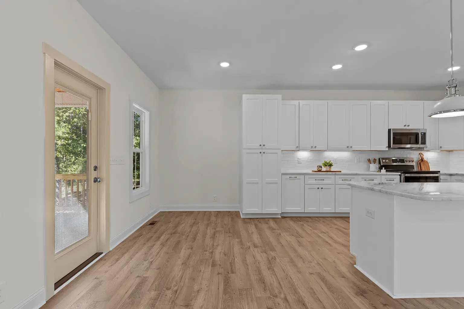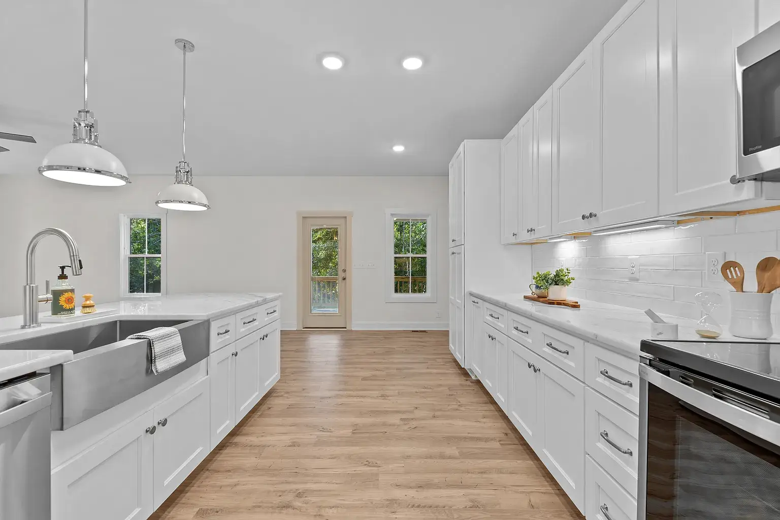 Beautiful new construction in The Village of Pinehurst. Welcome to this private setting in a conveniently located area. This gorgeous and inviting home is nearly complete, featuring thoughtful design and attractive upgrades. At almost 3500 square feet, there is room for everyone and space to enjoy hobbies and family time. Situated on a cul-de-sac, the exterior is clad in Hardy brand, cement fiber board siding for timeless quality and elegance. Covered front and rear porches set the exterior off in an inviting way. Extra-large garage with plenty of room for storage. The Crawl space is semi-encapsulated. The circular driveway is convenient, as well as functional and attractive. Inside, you’ll find high-quality laminate throughout the first floor, which also has a dedicated office, dining room, as well as laundry, powder room, and primary suite. The gourmet kitchen has GE Profile appliances, including a side-by-side French-door refrigerator, beautiful light fixtures, a custom fireplace mantle with gas logs, pantry cabinets with pullout shelves, and many other touches for the kitchen. Oak treads highlight the stairwell along with beautiful and functional sconce lighting. Upstairs, three additional bedrooms are situated around the loft area, a full bathroom, and extra extra-large bonus room with a fifth bedroom, potentially. Many extra storage closets throughout the home spacious and thoughtful layout in a private setting, all in the village of Pinehurst, and a short, five-minute drive to the Pinehurst hotel.