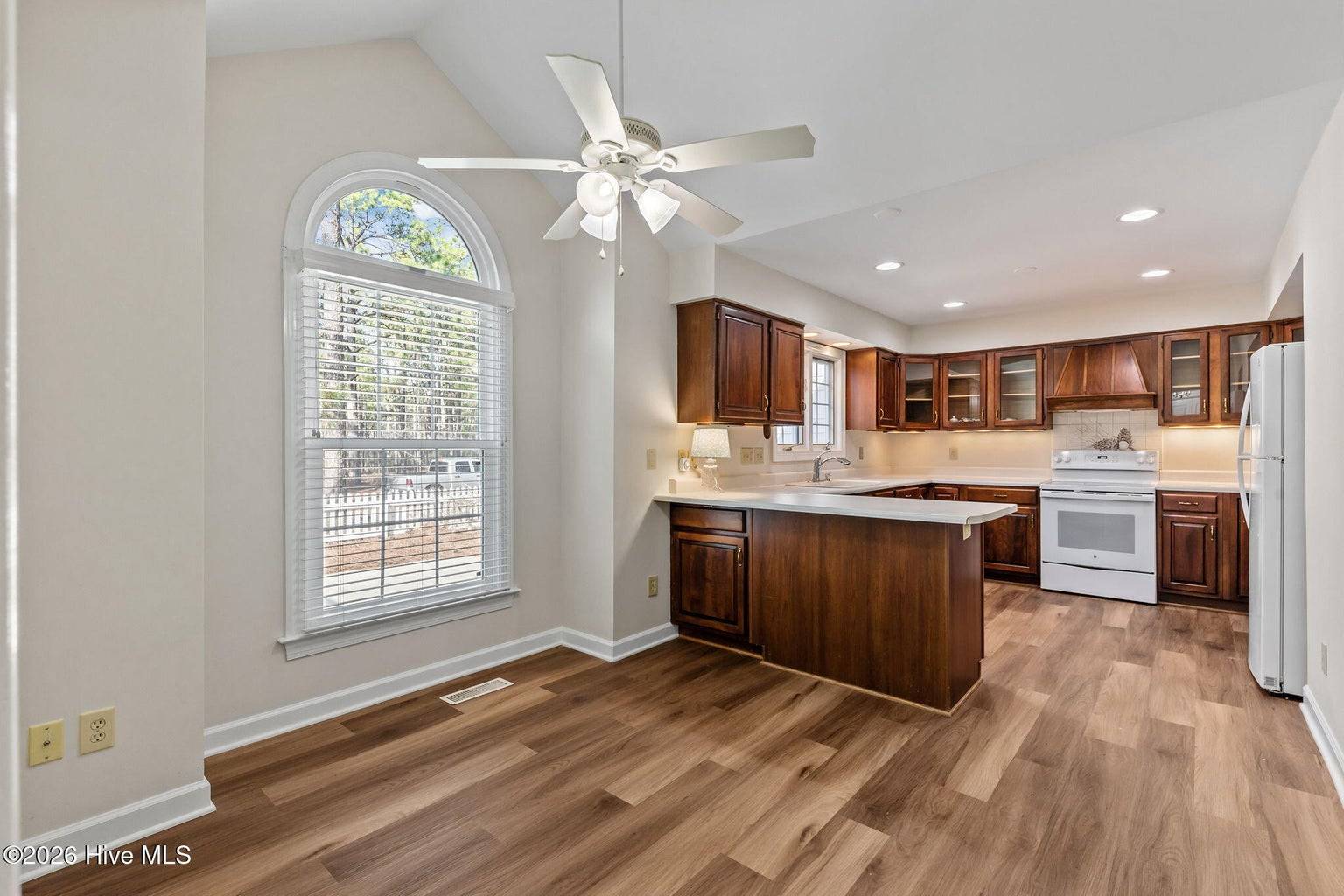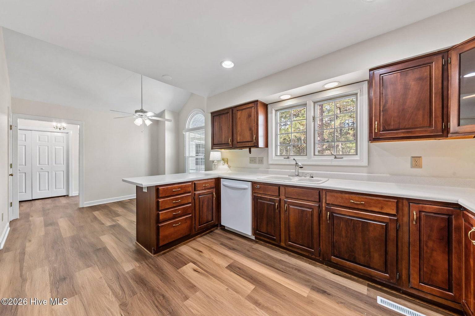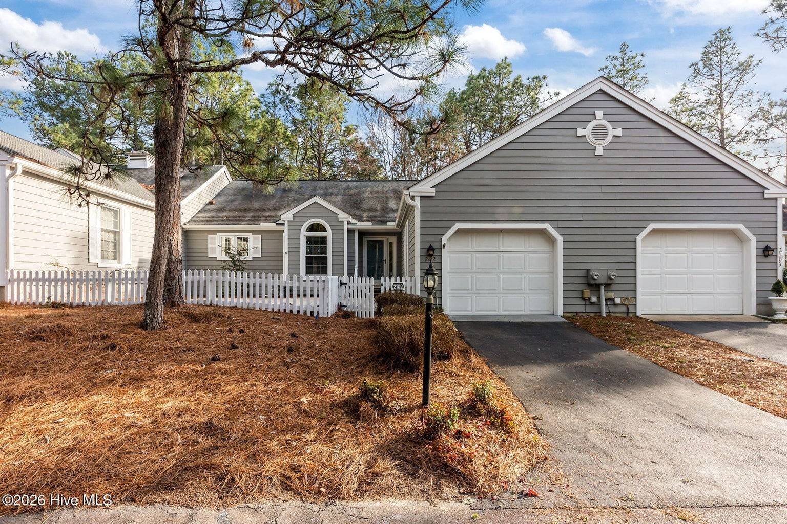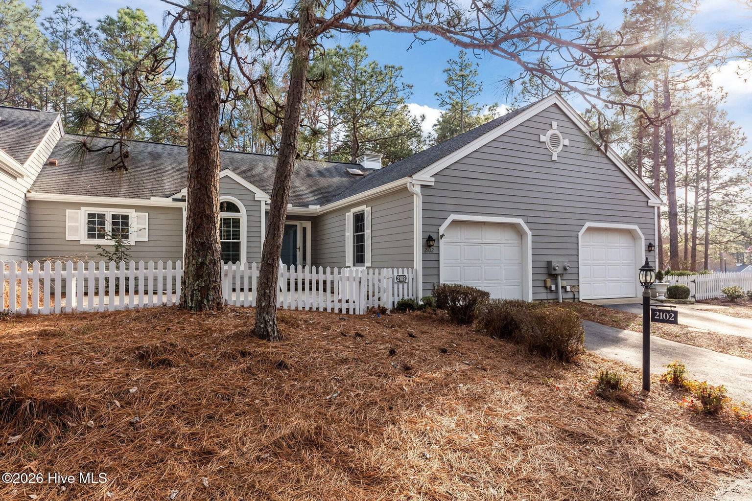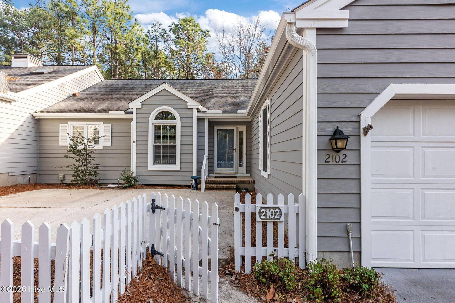 This is what you have been waiting for! Two-bedroom two-bathroom townhome in the peaceful Pinehurst neighborhood of Bretton Woods, complete with LVP flooring, smooth ceilings, and an attached transferable Pinehurst Country Club membership for those who want to take advantage of it! Not to mention the 1-car attached garage, fresh paint, and custom blinds throughout. Enjoy tranquil views from the covered rear porch and sunny days from the large front courtyard. Ceilings in the great room and primary bedroom are vaulted, leading to a spacious feeling. The primary suite boasts ample closet space as well as a separate vanity area from the bathroom itself, equipped with its own sink. Perfect split floor plan, with the great room boasting a wet bar dividing the guest area from the primary. Gorgeous cabinetry and newer appliances in the kitchen, along with under cabinet lighting. Located in the Lake Pinehurst area, this is an ideal spot for walks. Just a 5-minute ride from the quaint Village of Pinehurst, offering community events, dining, shopping, and so much more. 5 minutes from Pinehurst Country Club. Come enjoy carefree, friendly living at 2102 Stickney Circle!