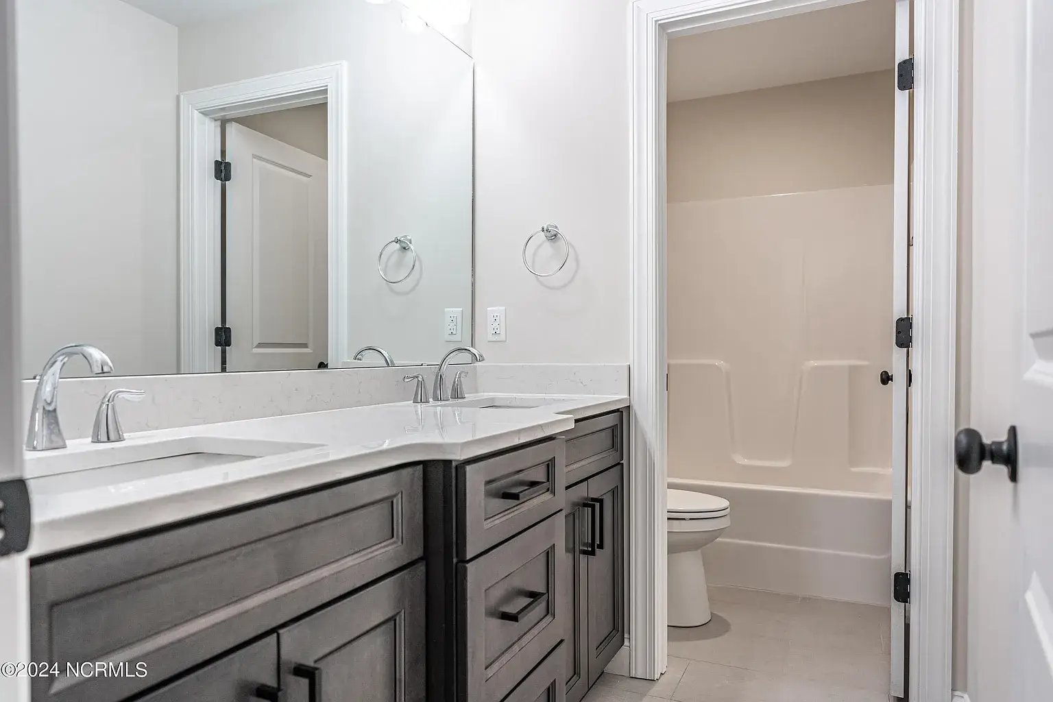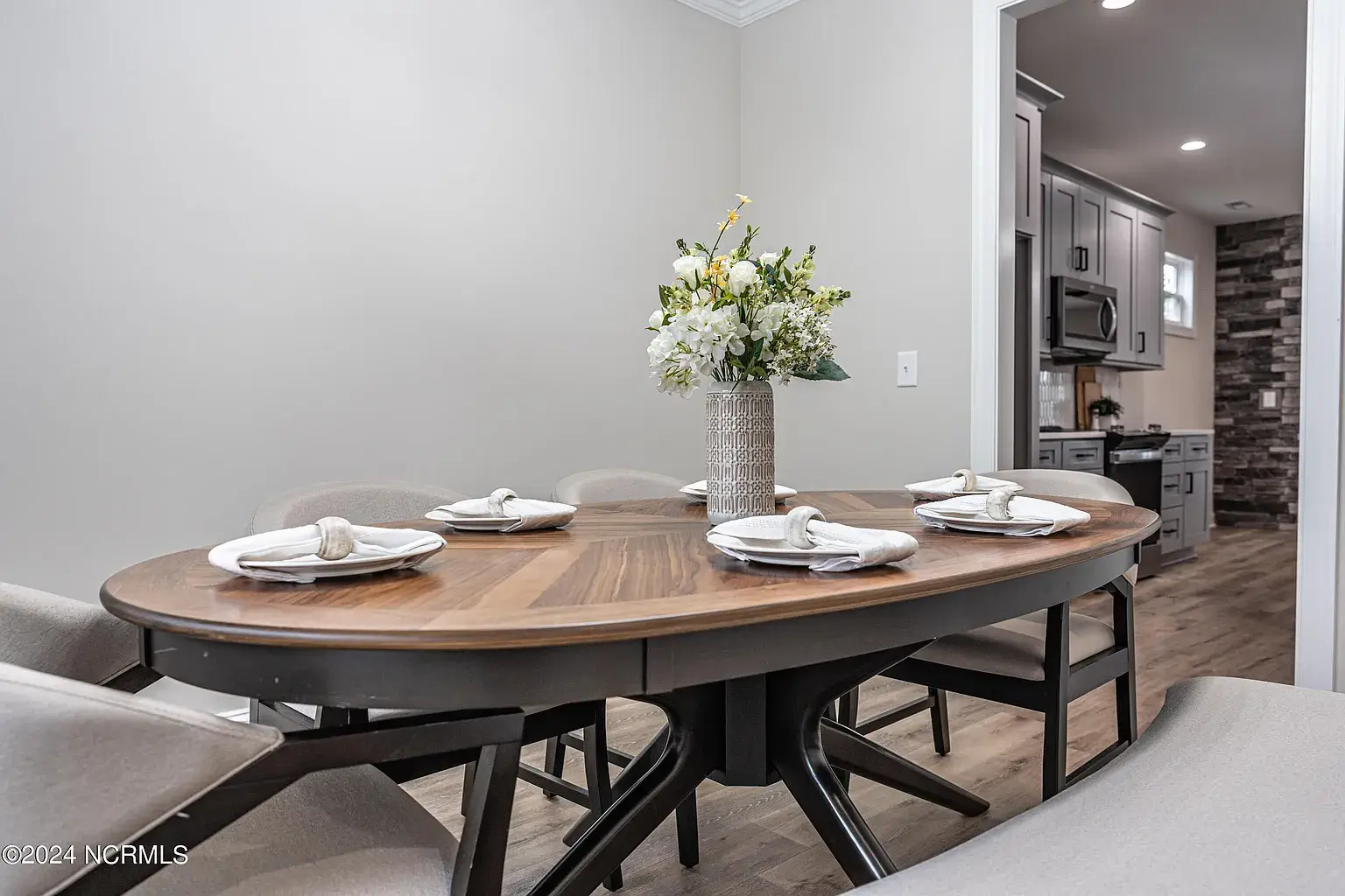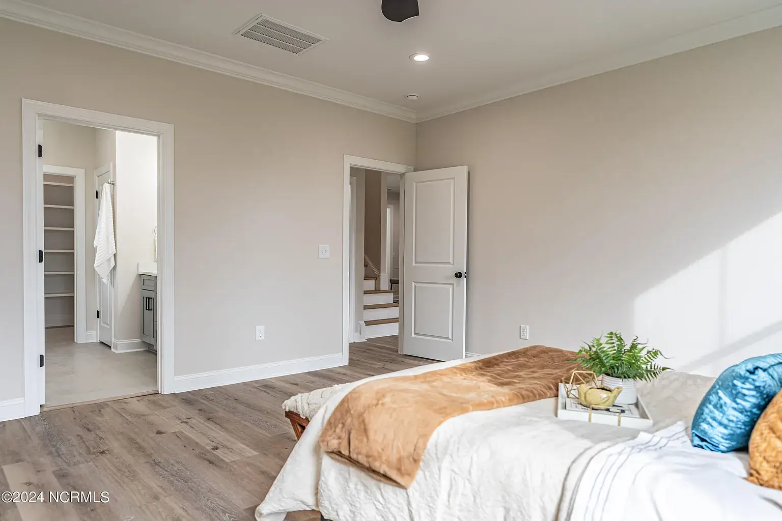 NEW CONSTRUCTION! Est completion 7.1.2024. Discover this quiet enclave convenient to US 1 and Downtown Southern Pines. With the primary suite on the main level, 4 bedrooms upstairs, and a formal dining room, this 5-bedroom, 3.5 bath home is so versatile. The laundry room is sensibly placed on the 2nd floor. Waterproof luxury vinyl plank flooring throughout common areas & primary suite is both stylish and low maintenance. The open concept living space incorporates an eat-in kitchen with quartz countertops, shaker style soft close cabinetry, dovetail box soft close drawers, & stainless-steel Whirlpool appliances. The primary bathroom has a beautiful, tiled shower & separate commode room. All bathrooms have tiled floors, as well as the laundry room. Easily maintained vinyl siding, quality architectural shingles, gutters, termite bond & 1 year builders warranty make this a secure investment! $3500 PREFERRED LENDER CREDIT. Builder to add landscaping for privacy prior to closing