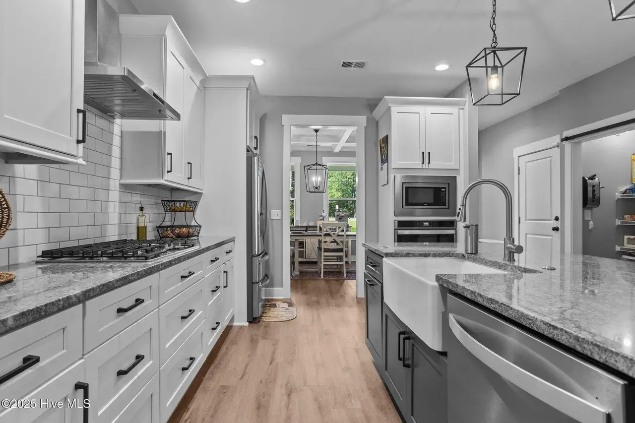 Welcome to 231 Hillard Rd, a beautiful 5-bedroom, 3.5-bath home in the desirable Kings Grant subdivision of Pinehurst. Enjoy close proximity to all the shops and restaurants of the charming Village of Pinehurst and vibrant Downtown Southern Pines, along with convenient access to FirstHealth Moore Regional Hospital. Inside, you’ll find a thoughtfully designed floor plan with a stunning kitchen at the heart of the home. Featuring two-tone cabinetry, a large center island, granite countertops, stainless steel appliances, a farmhouse sink, pantry, and ample storage, this space flows seamlessly into the living room, complete with a cozy gas fireplace. A separate dining room provides the perfect spot for gatherings and formal meals. The spacious primary suite is located on the main level and offers a relaxing retreat with dual vanities, a walk-in closet, a separate tiled shower, and a soaking tub. Upstairs, four additional bedrooms and two full baths provide plenty of space and privacy for family or guests. A 2-car garage adds convenience and storage. Step outside to enjoy a fully fenced backyard with a patio, ideal for entertaining, play, or simply relaxing outdoors. Don’t miss the opportunity to make this beautiful Pinehurst home yours.