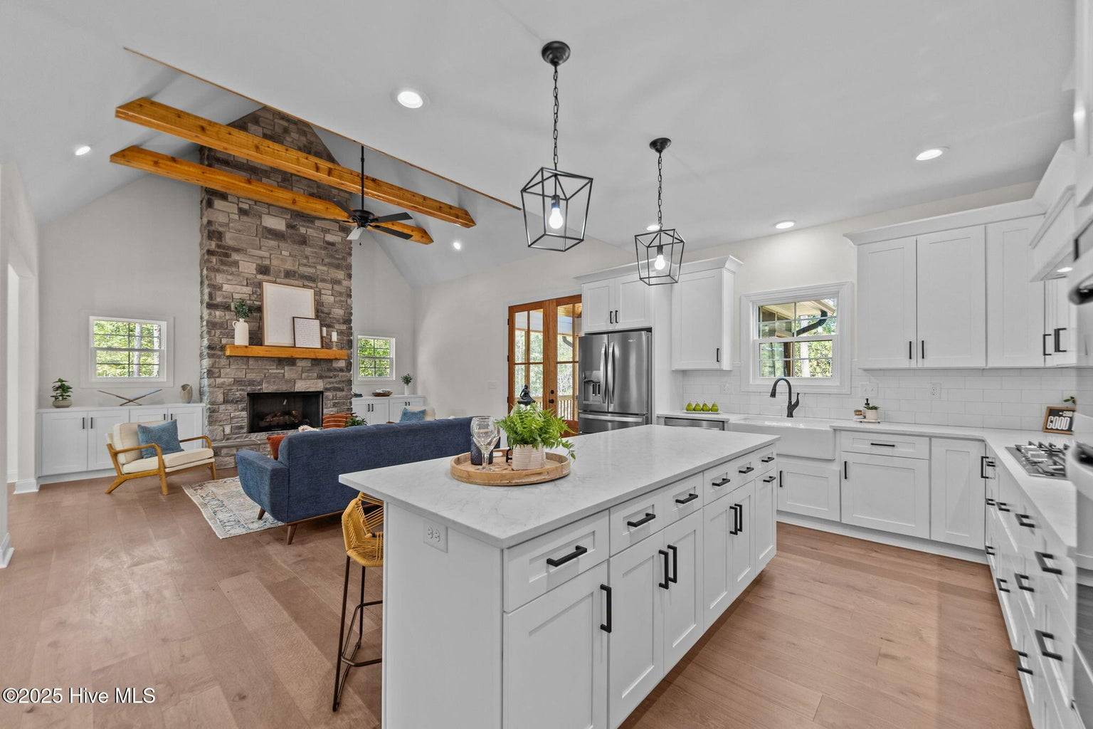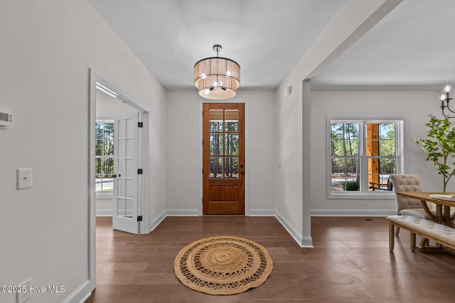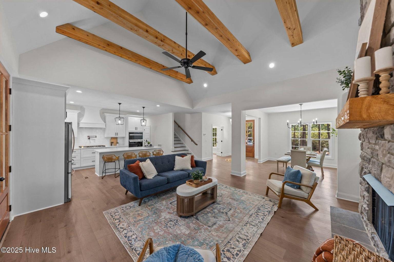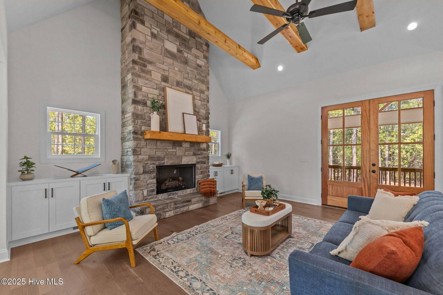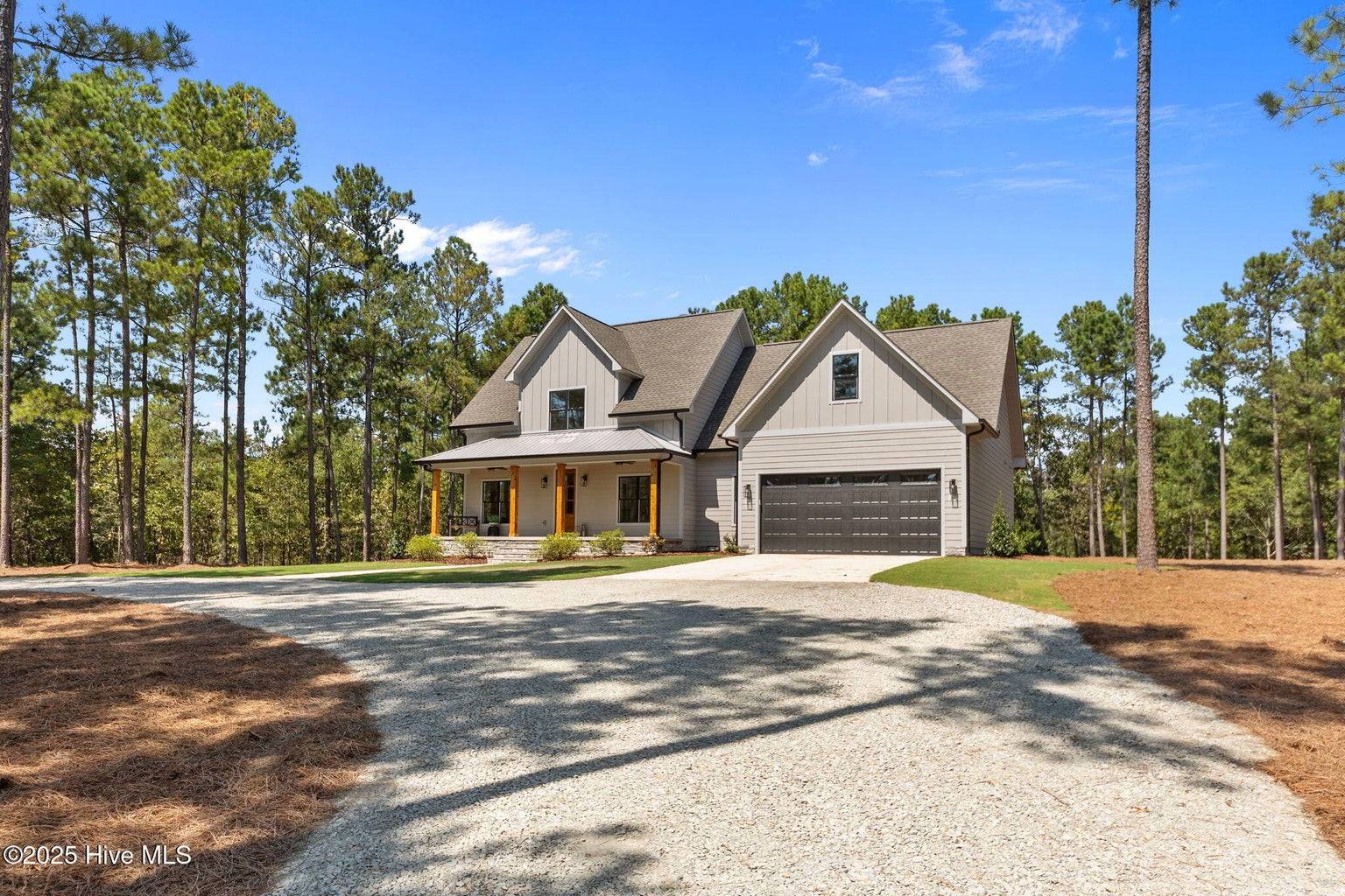Now Accepting Back-Up Offers! COMPLETED Spacious NEW CONSTRUCTION by Moore County’s premier builder, J Cheek Builders. Sitting on 2.2 secluded acres off of Star Ridge Road on a small private road, this high-end property offers space (3100sf), function (primary suite and office on main level), and style. Vaulted ceilings with red cedar beams and a floor-to-ceiling stone fireplace in the great room are the centerpiece of this lovely home, offering 4 bedrooms, a main-level study, a bonus room, and an incredible screened porch overlooking the wooded backyard. The kitchen is sure to delight – oversized island, built-in wall oven and microwave, 36” gas cooktop, tile backsplash, pot filler, gorgeous soft-close cabinetry, and a custom vent hood. All appliances, including the French door refrigerator, are Whirlpool. The pantry features wooden shelving. Luxurious finishes such as engineered hardwood throughout, quartz countertops, tile flooring in all bathrooms, Delta plumbing fixtures, Pella windows, and Hardie board siding with stone accents make this a timeless purchase to call home. Top-of-the-line Rinnai tankless water heater and a Trane heating and cooling unit will keep you comfortable in every season! Zoned for Sandhills Farmlife Elementary, New Century Middle School, and Union Pines High. Sandhills Classical Christian School, a K-12 private school, is also nearby. No HOA, NO restrictive covenants, low county taxes, yet very accessible! 40 minutes to Fort Bragg, 15 minutes to First Health Moore Regional Hospital, 10 minutes to fantastic grocery shopping at Harris Teeter in Whispering Pines. For golfers, the Country Club of Whispering and the Woods Golf Club are minutes away. 15 minutes to the wonderful dining, boutiques, and entertainment offered by the Village of Pinehurst and Downtown Southern Pines. Do not miss out on this high-quality home by J Cheek Builders, offering the best finishes in Moore County.