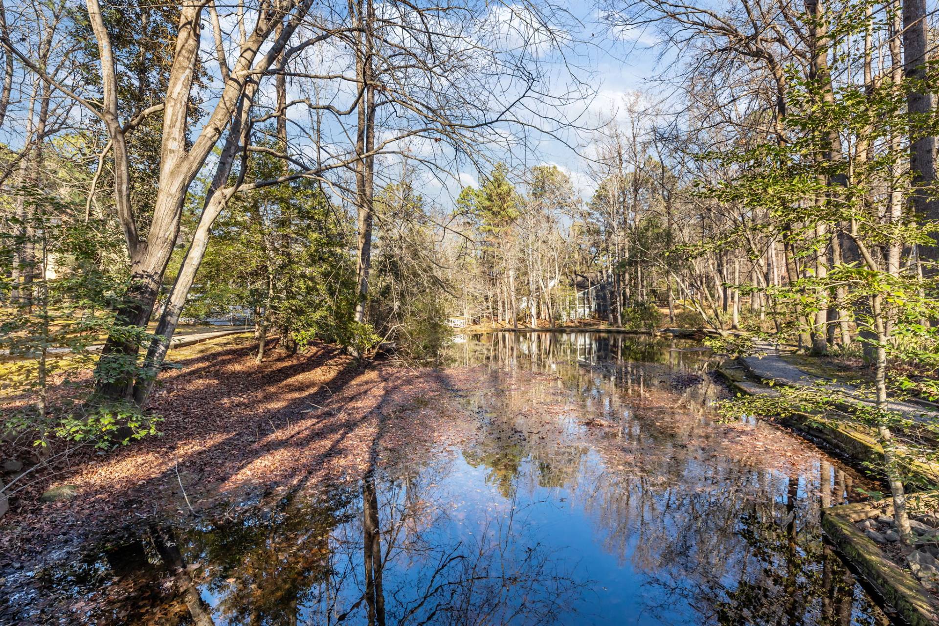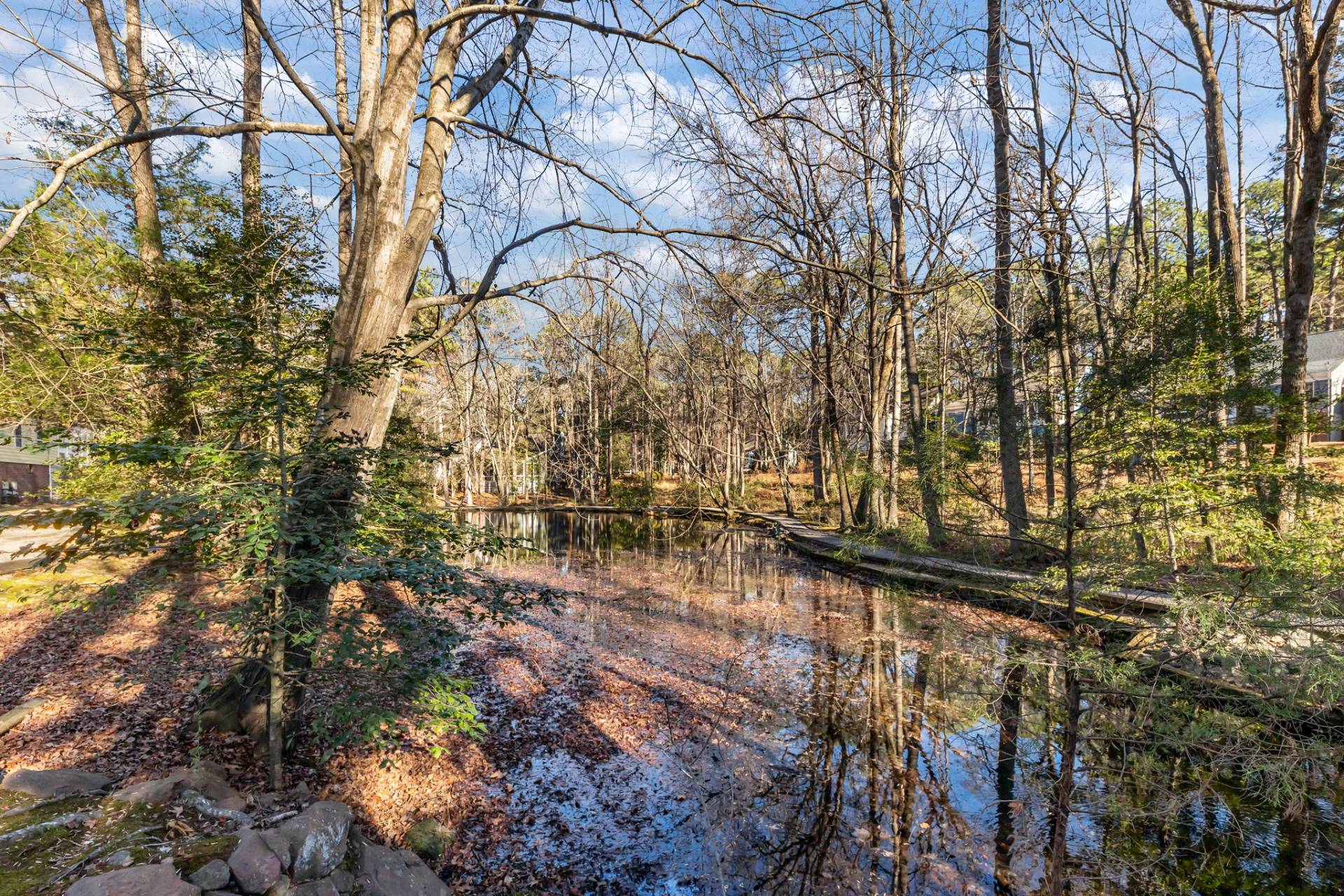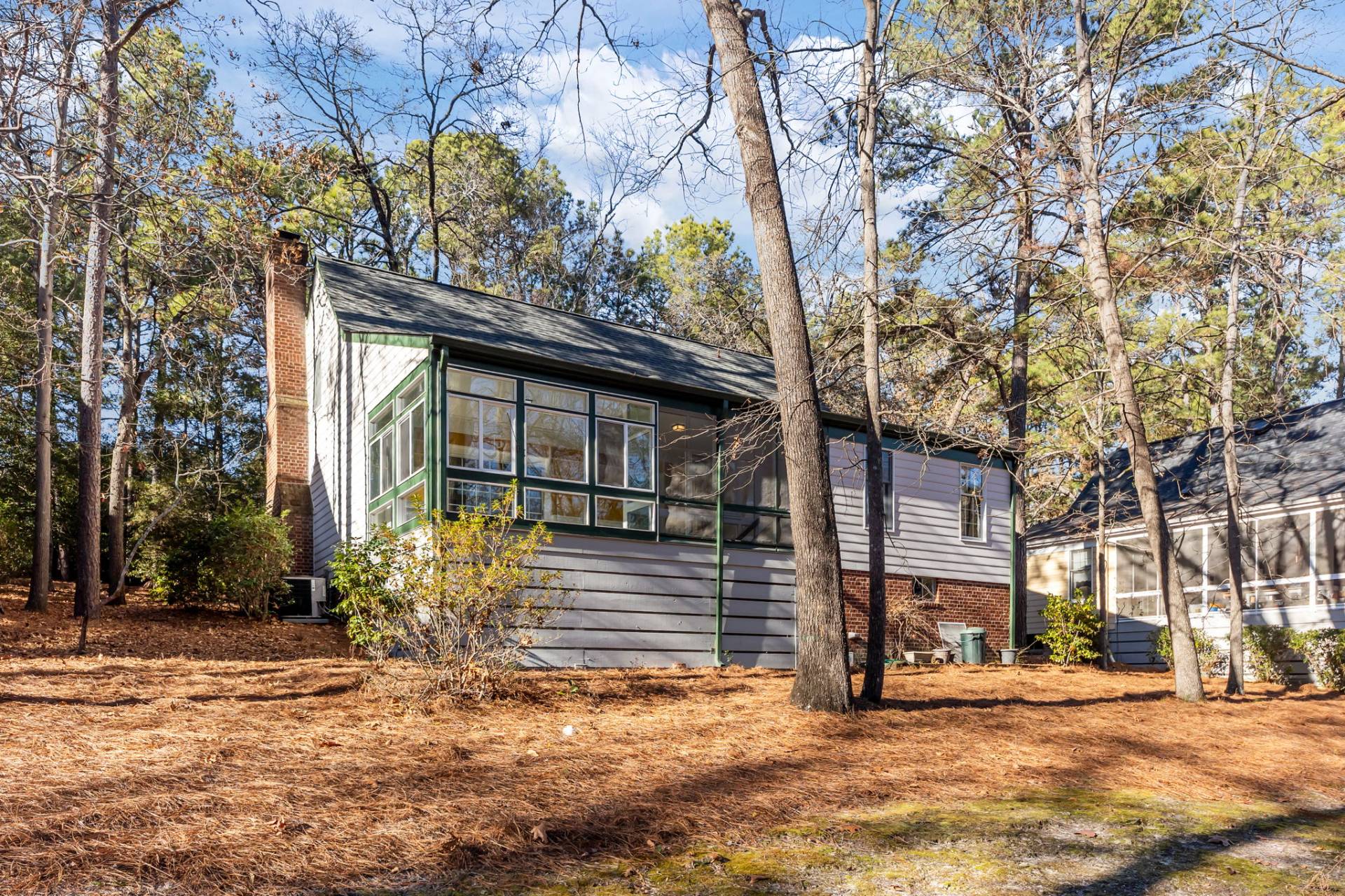 Discover Village in the Woods in the downtown area of Southern Pines! This small community of Williamsburg-style townhomes boasts a pond, walking trails, and mature trees lining the private road. 6 Village in the Woods Circle is a detached, freestanding townhome for added privacy, and boasts POND VIEWS from the cozy, heated and cooled sunroom. The high ceilings further elevate the spaciousness of this 2645 square foot home. The main level offers a gracious foyer, a large open living room and dining room, plus the primary suite, a comfortable den with built-in shelves, and an additional full bathroom. The spacious 2nd and 3rd bedrooms are on the second level, along with the 3rd full bath. There are PLENTY of closets throughout. BONUS – storage and a workshop area on the basement level. Hassle-free living – the HOA dues of $350/month include yard and grounds maintenance, exterior painting and gutter cleaning, a termite bond, irrigation system, road maintenance, street lighting, use of the sentry house for meetings, 2 assigned parking spaces, and insurance for all dwellings, buildings, and the common areas. Downtown Southern Pines offers quaint coffee shops, casual and fine dining options, a variety of boutiques, a lovely park with tennis courts, and fabulous local events, such as the weekly farmers’ market during the summer. Village in the Woods is 15 minutes from award winning medical at First Health Moore Regional hospital, and less than 10 minutes from Longleaf Golf & Family Club, Pine Needles Golf Club, Mid Pines Golf Club, and Midland Country Club – to name a few! This two-story townhome is being sold as-is, ready for the new owner to make it their own. Don’t miss out on this amazing opportunity!