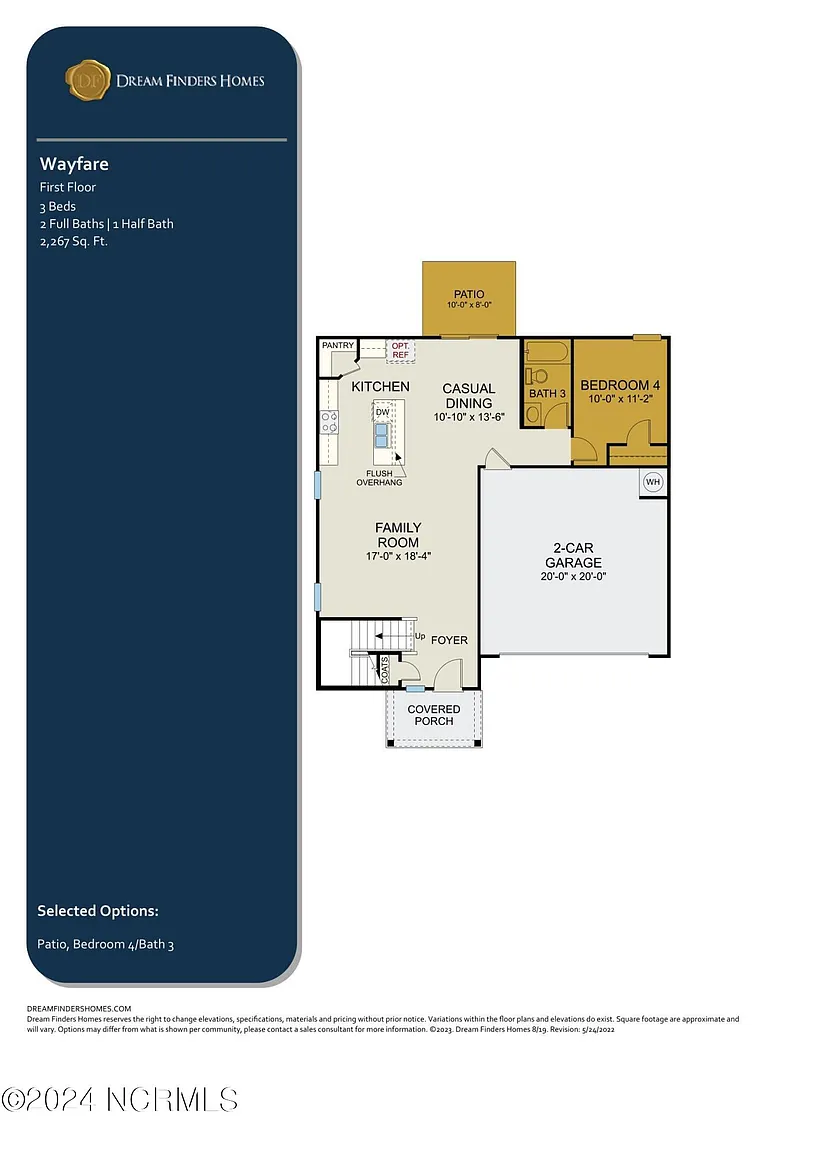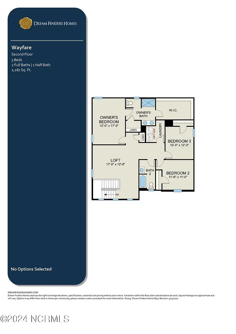 The Wayfare is a plan designed with the features today’s homeowners have been asking for. This 2- story home offers 4 bedrooms, 3 baths, attached 2 car garage, and 2,266 heated square feet for you, your family, and your guests to enjoy. The huge gathering room opens to the kitchen and casual dining area. The Wayfare offers a multi-functional eat-at island with a dishwasher and double basin sink. There is ample counter space for preparation and cooking as well as a spacious pantry closet for food storage. The casual dining area features a large sliding glass door allowing natural light to flow throughout the main floor and provides access to enjoy the backyard. There is a bedroom and full bathroom on the main floor. The 2nd level of the Wayfare has the owner’s suite, 2 bedrooms, a loft, a traditional full bath, and a spacious laundry room. The owner’s suite is positioned apart from the rest of the bedrooms on the second floor allowing the homeowner a private retreat.
